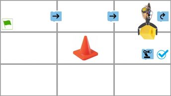 Leverage your coding skills to pick-up an object, make a turn and deliver it to the goal.